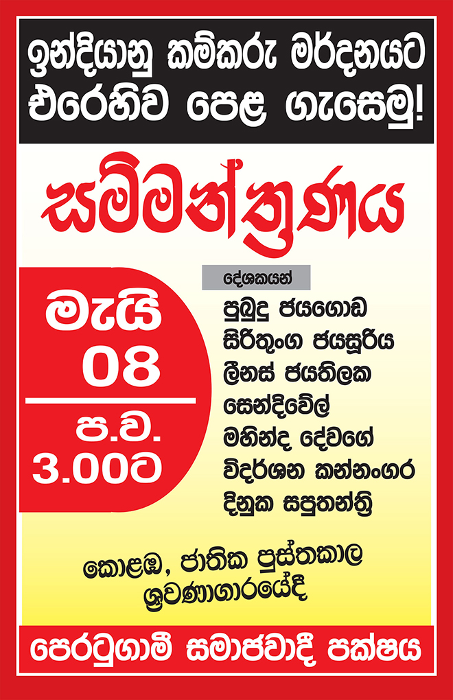 මෙම මර්දනකාරී වැඩපිළිවෙලට එරෙහිවීමේ කතිකාවක් නිර්මාණය කිරීමේ ජාත්යන්තර අවශ්යතාවයක එක් පියවරක් ලෙස හෙට දින (08) සවස 3.30 ට කොළඹ ජාතික පුස්ථකාල ශ්රවනාගාරයේදී සම්මන්ත්රණයක් පැවැත්වීමට පෙරටුගාමී සමාජවාදී පක්ෂය කටයුතු සංවිධානය කර ඇත.