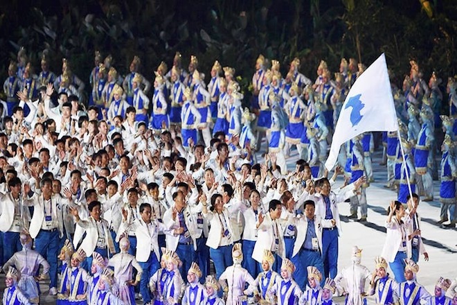 කොරියානු දෙරටේ ක්රීඩක ක්රීඩිකාවන් මෙවර ආසියානු ක්රීඩා උළෙලේ සාමාරම්භක අවස්ථාවට එක් ධජයක් යටතේ සහභාගීවී සිටි බව වාර්තාවේ.