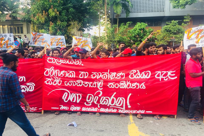 එහිදී අදහස් දැක්වූ කැළණිය විශ්ව විද්යාලයේ මහා ශිෂ්ය සංගමයේ සභාපති දමිත් සූරියසේකර අදහස් දක්වමින් “අපි ආවේ බැරියර් පෙරලන්න නෙමෙයි. අපි ආවේ විශ්ව විද්යාල බලධාරීන් කපා දැමූ අපේ අයිතීන් ඉල්ලන්නයි. පාලකයන්ගේ බලය පිළිබඳ ප්රශ්න අපිට වැඩක් නැහැ. කැලණිය විශ්ව විද්යාලයේ 10000 ක් පමණ අධ්යපනය ලබනවා. නමුත් ප්රමාණවත් තරම් නේවාසිකාගාර පහසුකම් නැහැ. දේශන ශාලාවල ඉඩ නැහැ. ගෙන ගන්න ගියත් ආචාර්යවරු නැහැ. අපි ඉල්ලන්නේ අපිට ඉගෙන ගන්න අයිතිය ලබාදෙන්න කියලයි. “