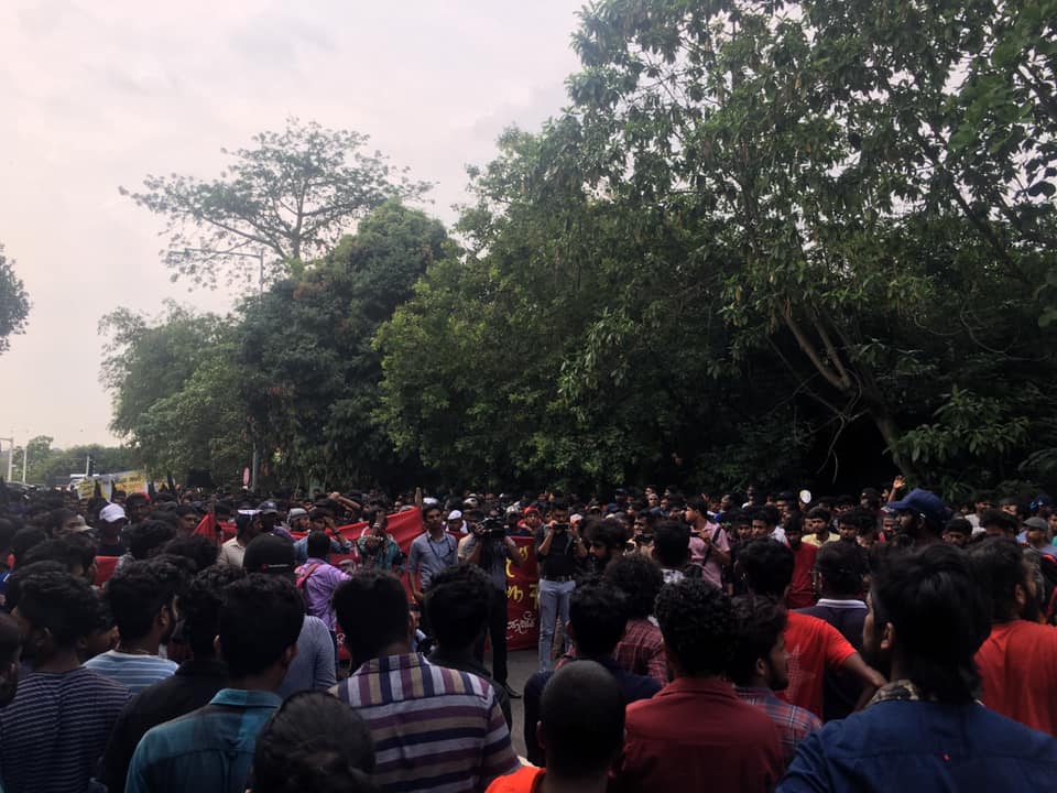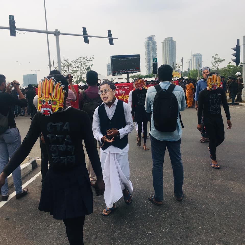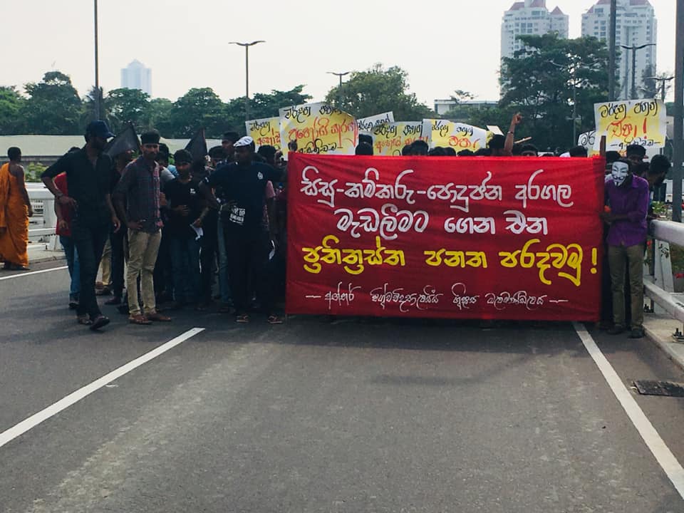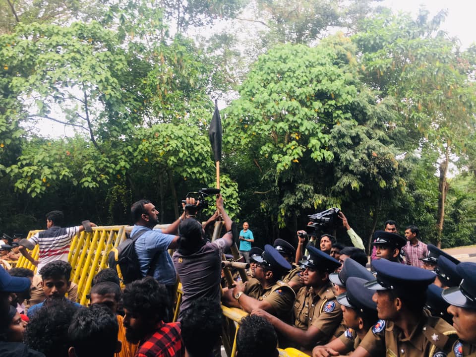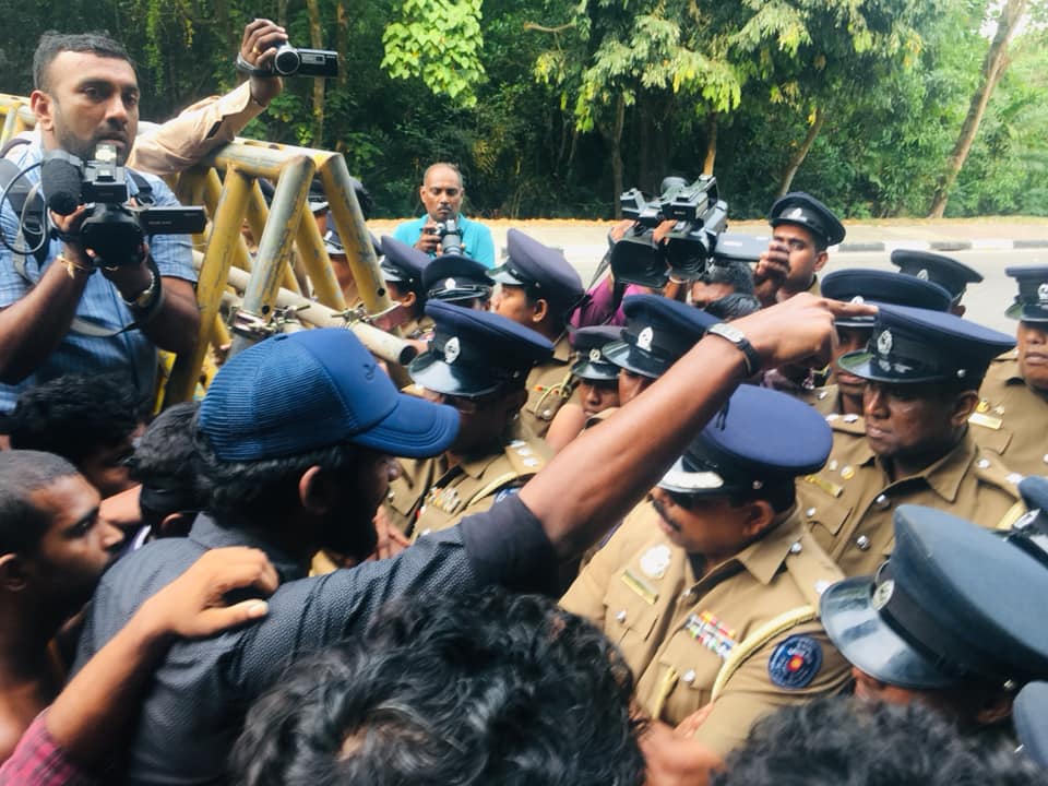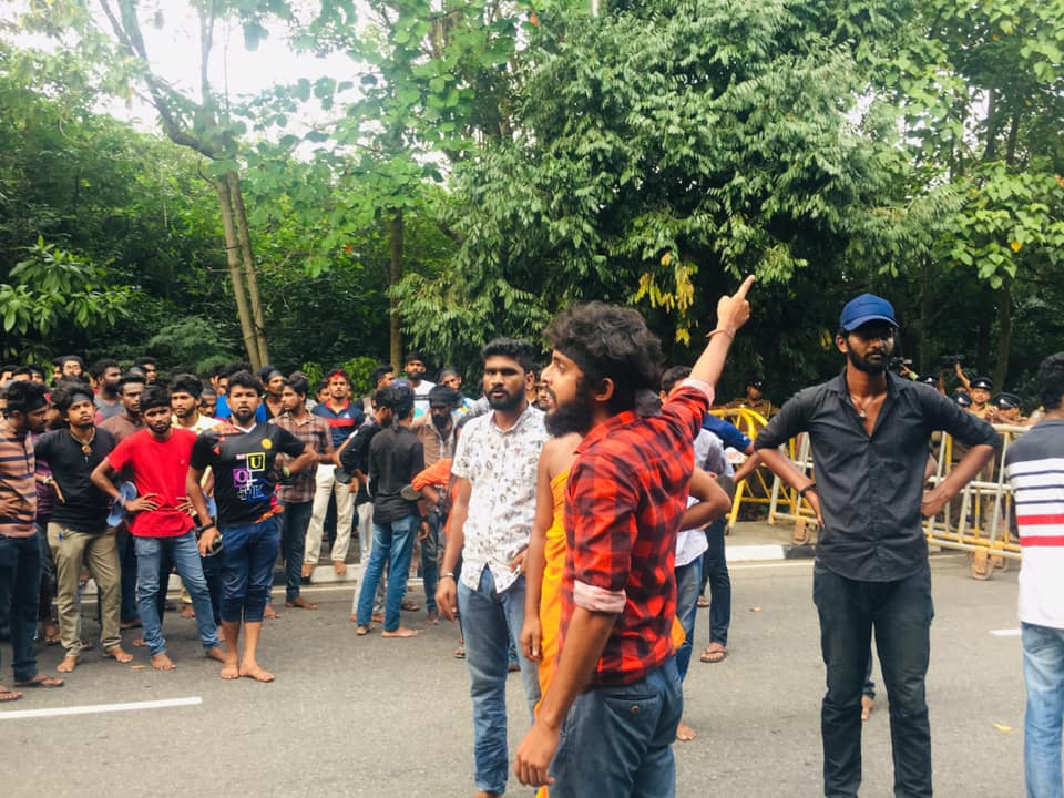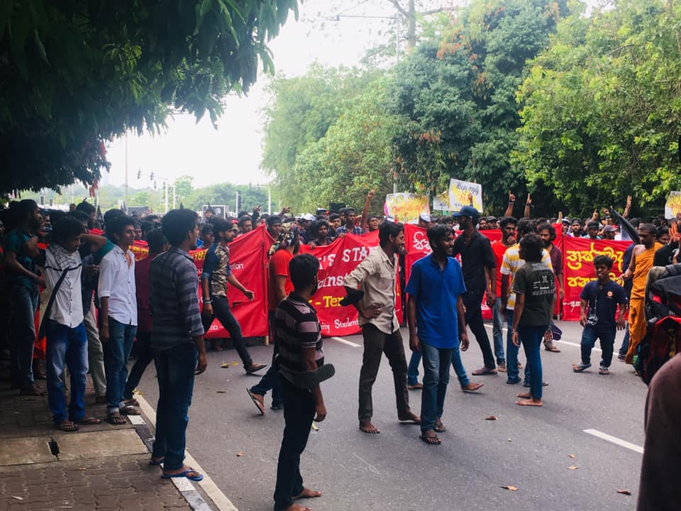 ප්රතිත්රස්ත පනතට එරෙහිව අන්තර් විශ්වවිද්යාල ශිෂ්ය බල මණ්ඩලයේ විරෝධතා පා ගමනට නැවැත්වීම සඳහා පොලීසිය විසින් පාර්ලිමේන්තු මාර්ගයේදී සිසුන්ට කඳුළු ගෑස් සහ ජල ප්රහාර එල්ල කරනු ලැබිණි. පසුව සිසුන් ලුහුබැද යමින් පහර දුන් පොලිස් කැරලි මර්දන භටයෝ අ.වි.ශි.බ.ම. කැදවුම්කරු අත්අඩංගුවට ගන්නා ලදී. සිසුන් විසින් කදුලු ගෑස් කැනිස්ටර් නැවත පොලිසිය වෙත එල්ල කරනු දක්නට ලැබිණි. කළ අතර එහිදී පාර්ලිමේන්තු පොලිසියේ සහකාර පොලිස් අධිකාරිවරයකු තුවාල ලබා ඇති බව පොලිසිය කියයි.