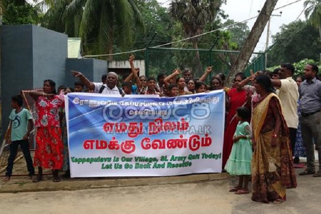 මීට අමතරව හමුදාව ඉඩම් අත්පත්කරගැනීම නිසා තම ඉඩම් අහිමිවූ විශාල පිරිසක් උතුරු නැගෙනහිර පළාත්වල තම ඉඩම් නැවත ලබාදෙන ලෙස ඉල්ලමින් අරගලයක නිරත වෙමින් සිටියි.