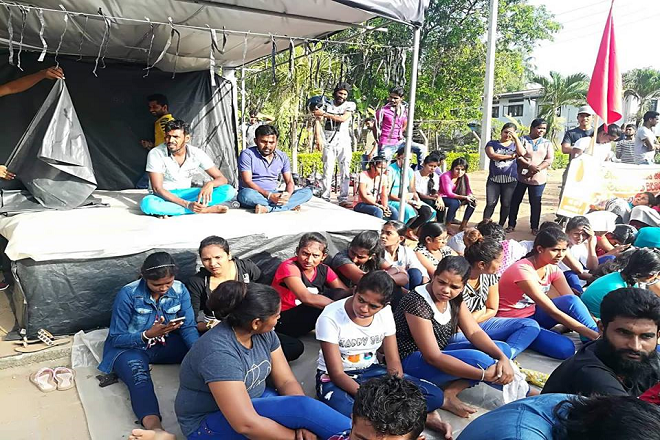 කටුනායක අත් වැසුම් නිෂ්පාදනය කරනු ලබන කර්මාන්තශාලාවක සේවකයින් සංවිධානය කළ ලේ දන්දීමේ වැඩසටහනක දැන්වීමක්, සිය කර්මාන්තශාලාවේ දැන්වීම් පුවරුවක ඇලවූ නිසා එහි සේවකයින් 05 දෙනෙකු සේවයෙන් නෙරපා හැරීමට එරෙහිව එහි සේවකයෝ අඛණ්ඩ උපවාසයක් ආරම්භ කර තිබේ. මීට පෙර ඔවුන් ආරම්භ කර තිබූ විරෝධතාවයට අදට දින 60ක් සම්පූර්ණ වී තිබේ.