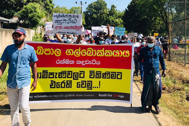 සංඛපාල ගල්බොක්කයාය කඳු වැටිය විනාශ කරමින් ඩොලමයිට් හා කැල්සියම් සිලිකේට් ඛනිජ පාෂාණ කැනීම සඳහා සමාගමකට අවසර ලබා දීමට එරෙහිව සංඛපාල ගල්බොක්ක යාය කඳු වැටිය සුරැකීමේ ජනතා ව්යාපාරය, YOUTH FOR CHEnge, සොබාදහම් පාසල හා ගම්වාසීන් එක්ව සංවිධානය කල විරෝධතාව අද(23) සංඛපාල ගල්කොරිය හන්දියේ දී පැවැත්විණ