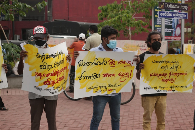 ජනතාව මුහුණ දෙමින් සිටින ජීවන දුෂ්කරතා හමුවේ වීදි බසින ලෙසත් මෙම අර්බුදයට හේතු වූ දශක හතක ධනපති පාලනයේ ශාපයට එරෙහිව ජන බලයක් ගොඩ නගන ලෙසත් ජනතාවට ආරාධනා කරමින් පෙරටුගාමී සමාජවාදී පක්ෂය විසින් දිස්ත්රික්ක කිහිපයක ප්රධාන නගරවල උද්ඝෝෂණ සංවිධානය කර තිබේ.