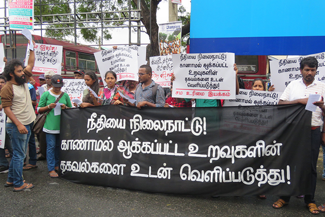 සියලුම දේශපාලන සිරකරුවන් නිදහස් කරන ලෙසත් පසුගිය කාලයේ අතුරුදන්වූවන් ගැන සත්ය හෙළිකරන ලෙසත් ආණ්ඩුවට බල කරමින් ‘සම අයිතිය ව්යාපාරය‘ අද යාපනය නගරයේ විරෝධතාවක් පැවැත්වීය.