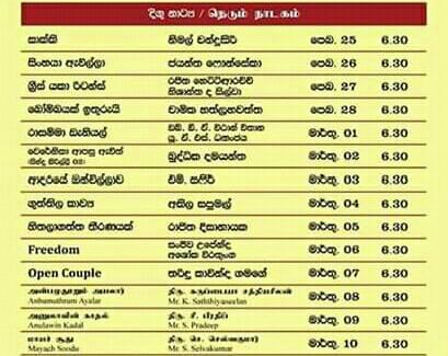 එහිදී වේදිකා ගතවන නාට්ය නාමාවලිය පහත දැක්වේ.