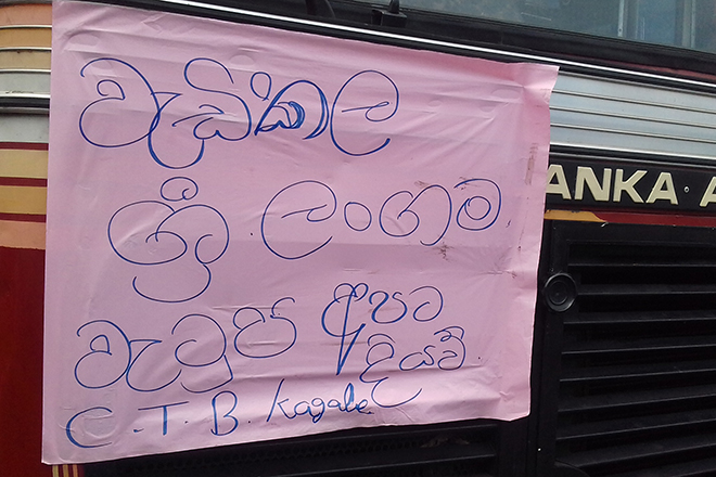 දිවයින පුරා ලංගම සේවකයන් ගෙන ගිය විරෝධතා ව්යාපාර අතුරින් කෑගල්ල ඩිපෝවේ විරෝධතා පෝස්ටර් අපගේ ඡායාරූපයට හසු විය.