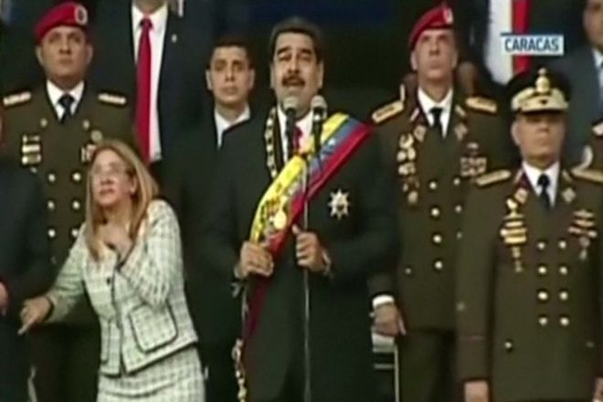 ඊයේ එරට හමුදාවේ 81 වැනි සංවත්සර උත්සවයට සහභාගීවි හමුදා උත්තමාරය අවසන්කරමින් පැවැති කතාව අතර තුරදී පුපුරණ ද්රව්ය පිරවූ ඩ්රෝන යානයකින් එල්ල කරන ලද ප්රහාරයන් දෙකකින් දිවි ගලවා ගැනීමට ජනාධිපති මාදුරෝ සමත්ව ඇති බව විදෙස් මාධ්ය වාර්තා කරයි.