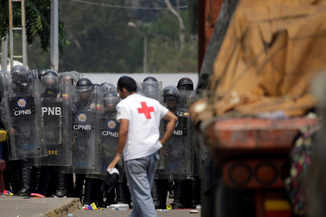 වෙනිසියුලාවේ පාලන බලය සදහා එක්සත් ජනපද හිතවාදියකු ගෙන ඒමට එක්සත් ජනපදය කරන මැදිහත්වීමට රතු කුරුස සංවිධානයේ ලාංඡනය පාවිච්චි කිරීමේදී එසේ නොකරන ලෙස එම සංවිධානය නිවේදනය කරයි.