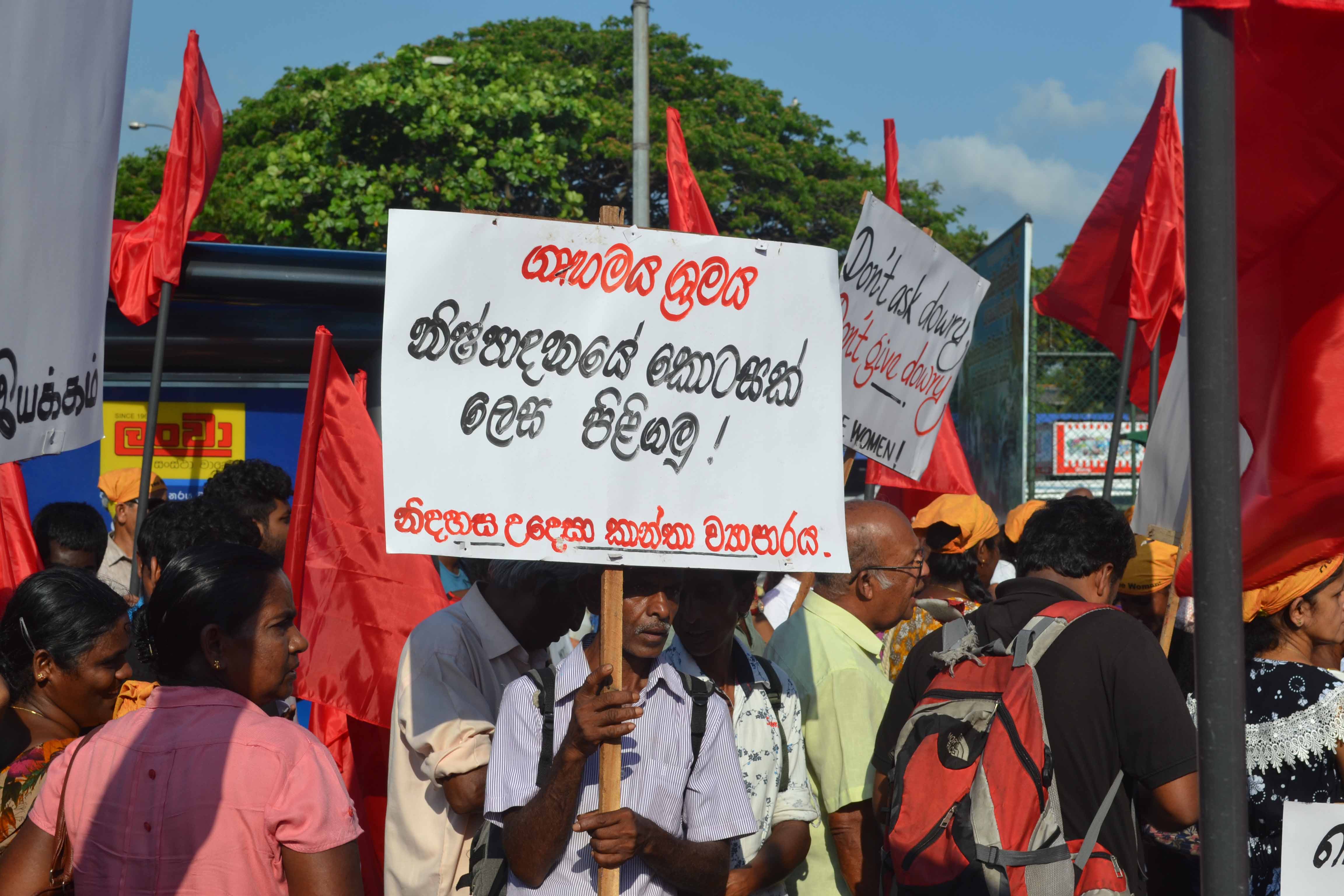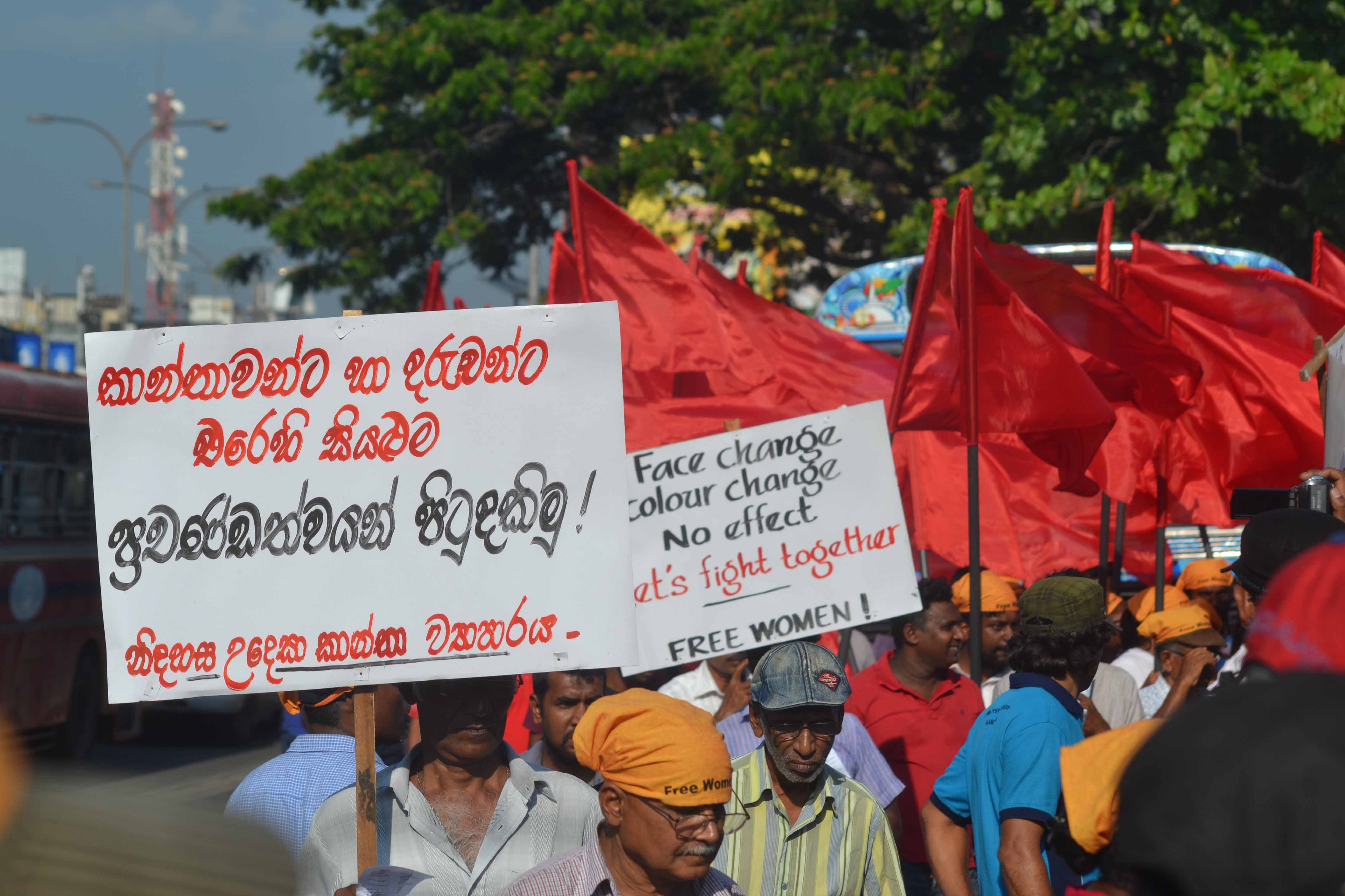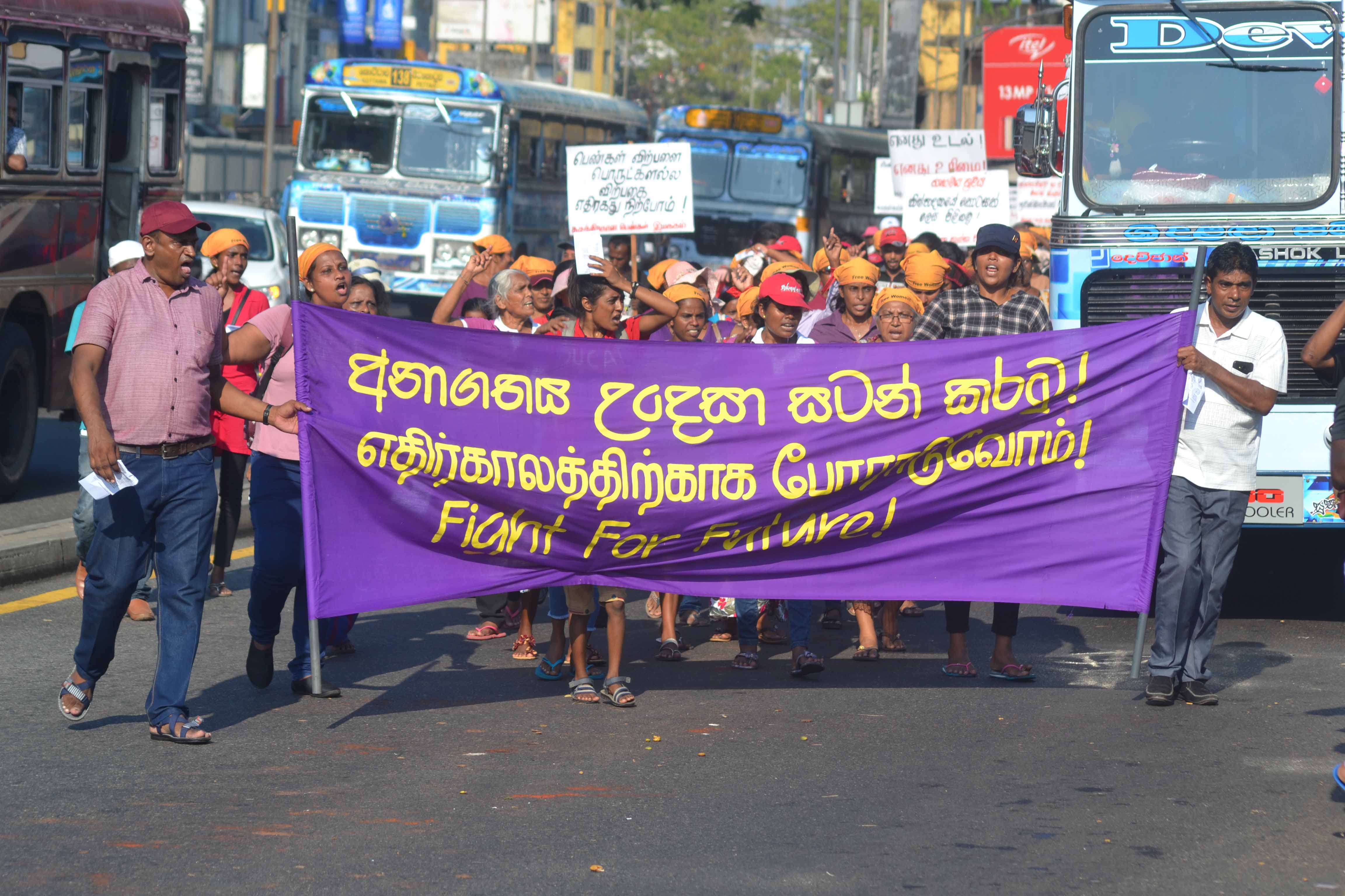අනෙක් පැත්තෙන් වතුකරයෙ වැඩකරන ජනතාව තන්ට ජීවත් වෙන්න සරිලන වැටුපක් ඉල්ලනවා. ඒ අතර සාතිශය බහුතරයක් කාන්තාවන්. මේ සාධාරණ වැටුප් ඉල්ලීඹ ගැන විසදුම් ලබා දෙන්නෙ නැති පාලකයන් තමයි මේ බොරු සුරංගනා කතා මවන්නෙ. තවතවත් ණය උගුලට ඇද දමන්නෙ. ඊළගට ඇගලුම් ක්ෂේත්රය පසුගිය කාලෙ සිය ගණනක් සේවකයන් කම්හල් වසා දමලා එළියට ඇද දමනු ලැබුවා. මේ වැඩි දෙනා කාන්තාවො. ඒ ආකාරයට මැදපෙරදිග වේවා, වතු කම්කරු ක්ෂේත්රයේ වේවා, කටුනායක වේවා සේවයට යන කාන්තාවන් තමන්ගෙ ජිවිතේ අරමුනු වෙනුවෙන් වැඩ කරන්නෙ. අවදානම දරාගෙන වැඩ කරලා අසරණභාවයට පත් වෙනවා. අවසානයෙදි ඔවුන්ට හිමි වෙන්නෙ නොසැළකිල්ල. වැඩකරද්දි සිදුවන විවිධ හිංසා පීඩා, ලිංගික අඩත්තේට්ටම්, මේ සියල්ල විදදරාගෙන වැඩ කළාට ඔවුන් ගැන කිසිම වගකීමක් නෑ.