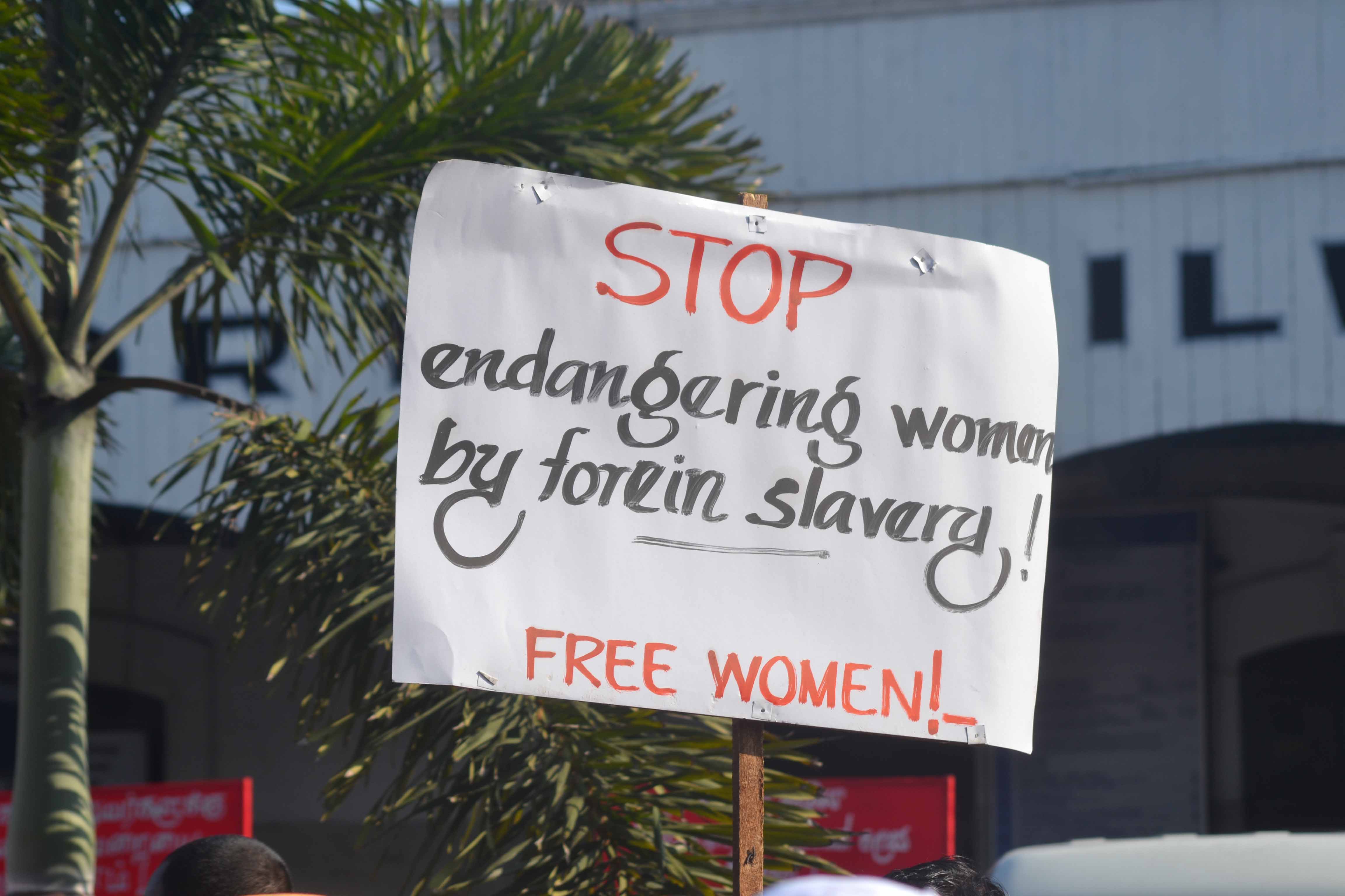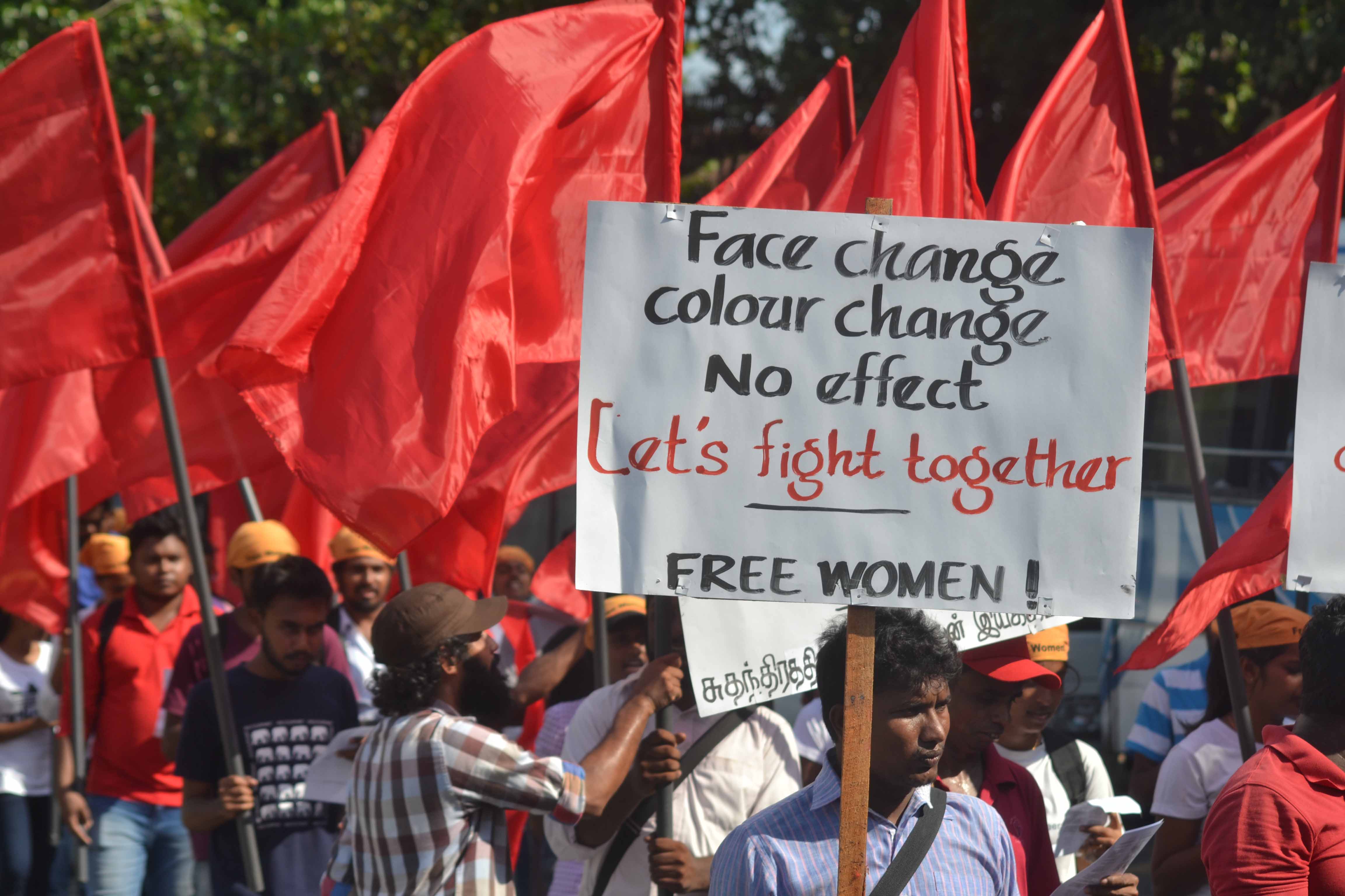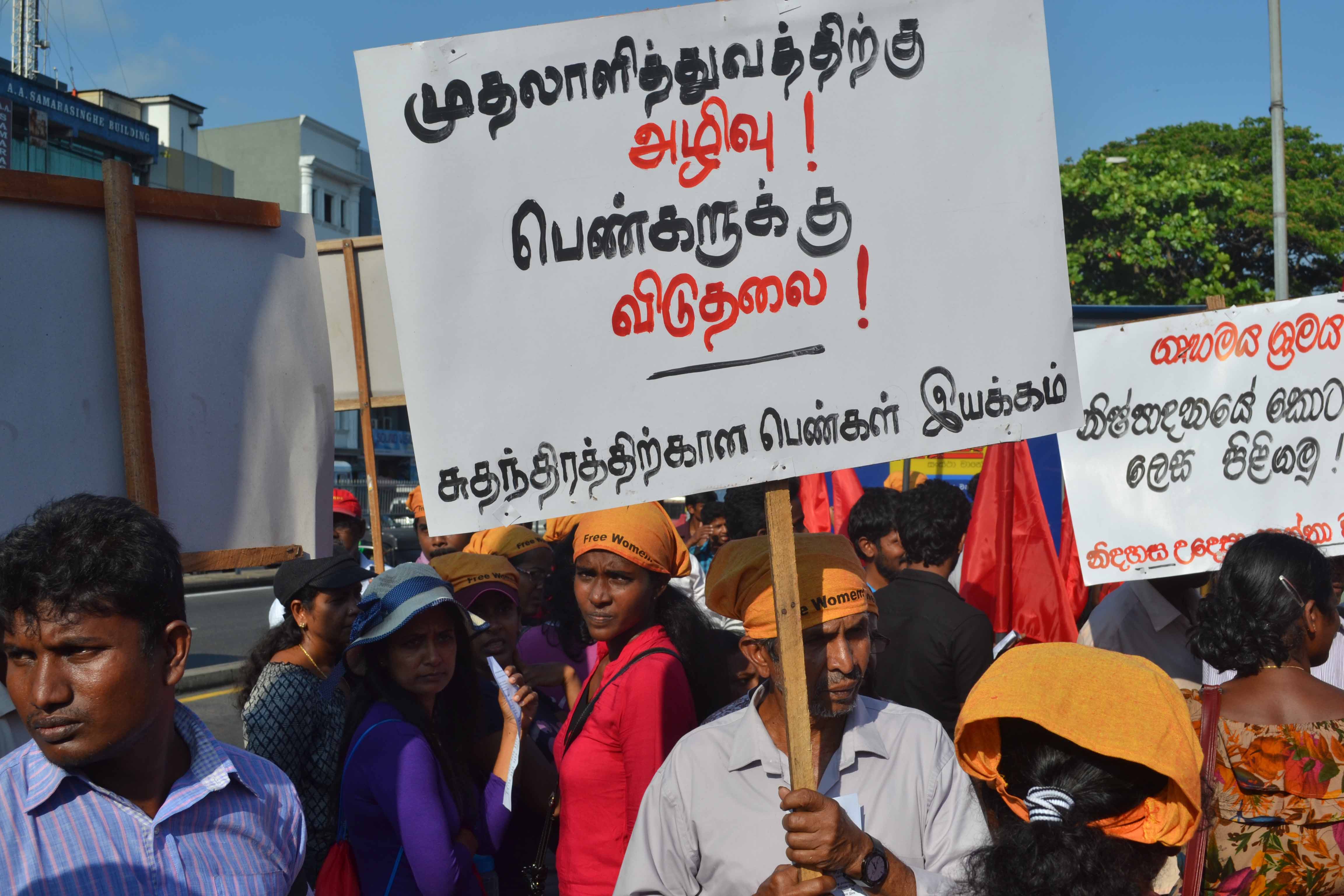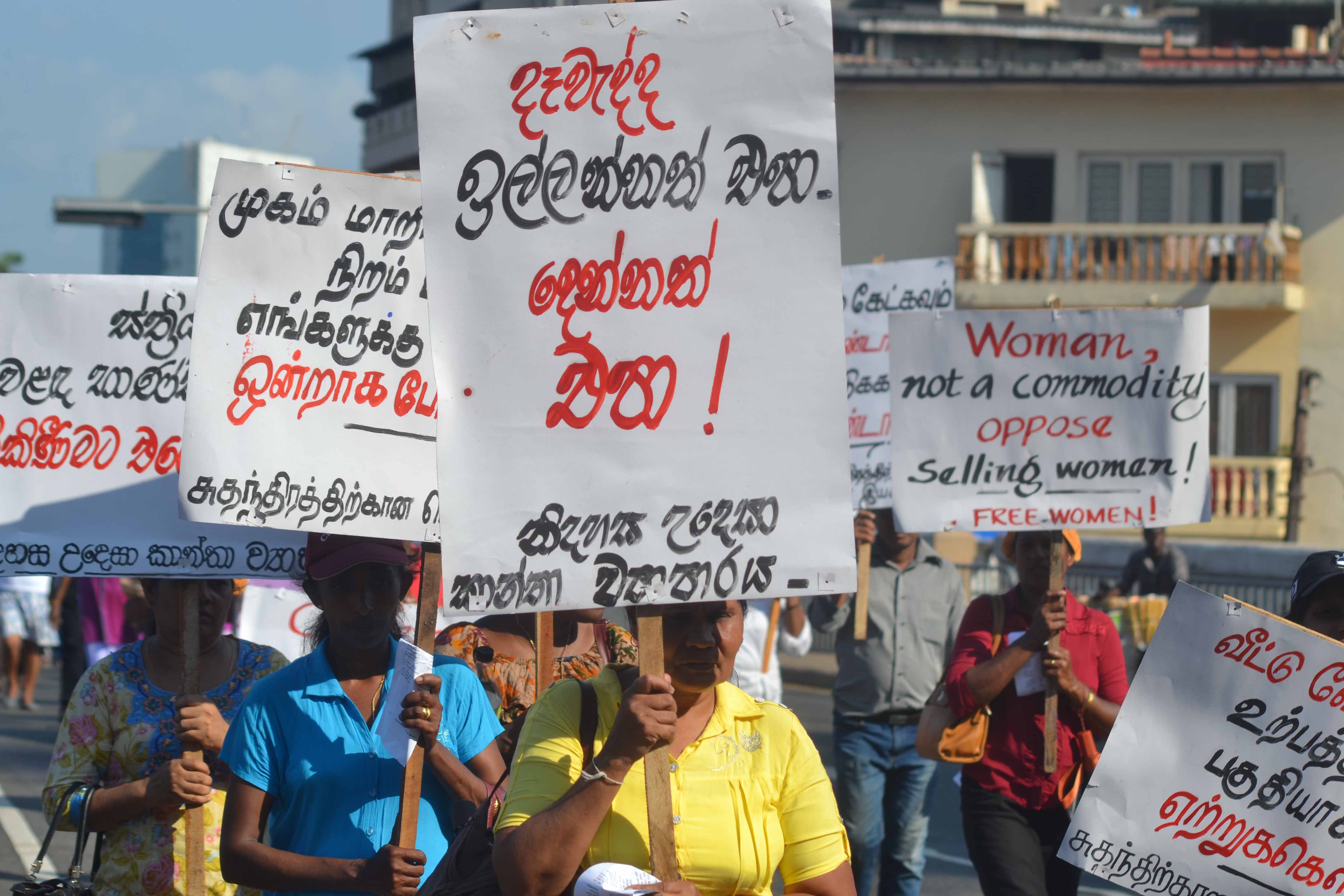 අනෙක් පැත්තෙන් වතුකරයෙ වැඩකරන ජනතාව තන්ට ජීවත් වෙන්න සරිලන වැටුපක් ඉල්ලනවා. ඒ අතර සාතිශය බහුතරයක් කාන්තාවන්. මේ සාධාරණ වැටුප් ඉල්ලීඹ ගැන විසදුම් ලබා දෙන්නෙ නැති පාලකයන් තමයි මේ බොරු සුරංගනා කතා මවන්නෙ. තවතවත් ණය උගුලට ඇද දමන්නෙ. ඊළගට ඇගලුම් ක්ෂේත්රය පසුගිය කාලෙ සිය ගණනක් සේවකයන් කම්හල් වසා දමලා එළියට ඇද දමනු ලැබුවා. මේ වැඩි දෙනා කාන්තාවො. ඒ ආකාරයට මැදපෙරදිග වේවා, වතු කම්කරු ක්ෂේත්රයේ වේවා, කටුනායක වේවා සේවයට යන කාන්තාවන් තමන්ගෙ ජිවිතේ අරමුනු වෙනුවෙන් වැඩ කරන්නෙ. අවදානම දරාගෙන වැඩ කරලා අසරණභාවයට පත් වෙනවා. අවසානයෙදි ඔවුන්ට හිමි වෙන්නෙ නොසැළකිල්ල. වැඩකරද්දි සිදුවන විවිධ හිංසා පීඩා, ලිංගික අඩත්තේට්ටම්, මේ සියල්ල විදදරාගෙන වැඩ කළාට ඔවුන් ගැන කිසිම වගකීමක් නෑ.