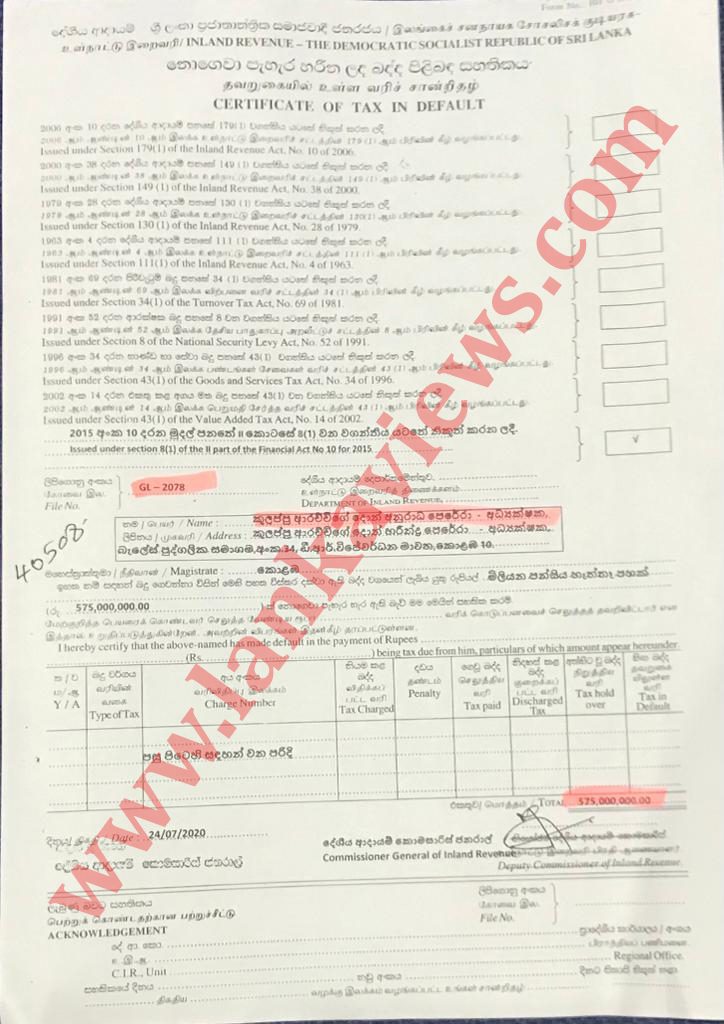 මේ සාක්ෂිවලින් පැහැදිළියි මේ පුද්ගලයෝ කෝටි ගණන්වලින් බදු ගෙවීම පැහැර හැරල තියෙනවා. ඔවුන් සම්බන්ධ කිසිදු පියවරක් මේ වෙන තුරු අරන් නැහැ. විශේෂ අධිකරණයක් දලා මේ බදු ගෙවීම පැහැර හරින පුද්ගලයන් ගෙනල්ලා ඔවුන්ගේ දේපල රාජසන්තක කරල හරි ඔවුන්ගේ බදු අය කර ගත යුතුයි.