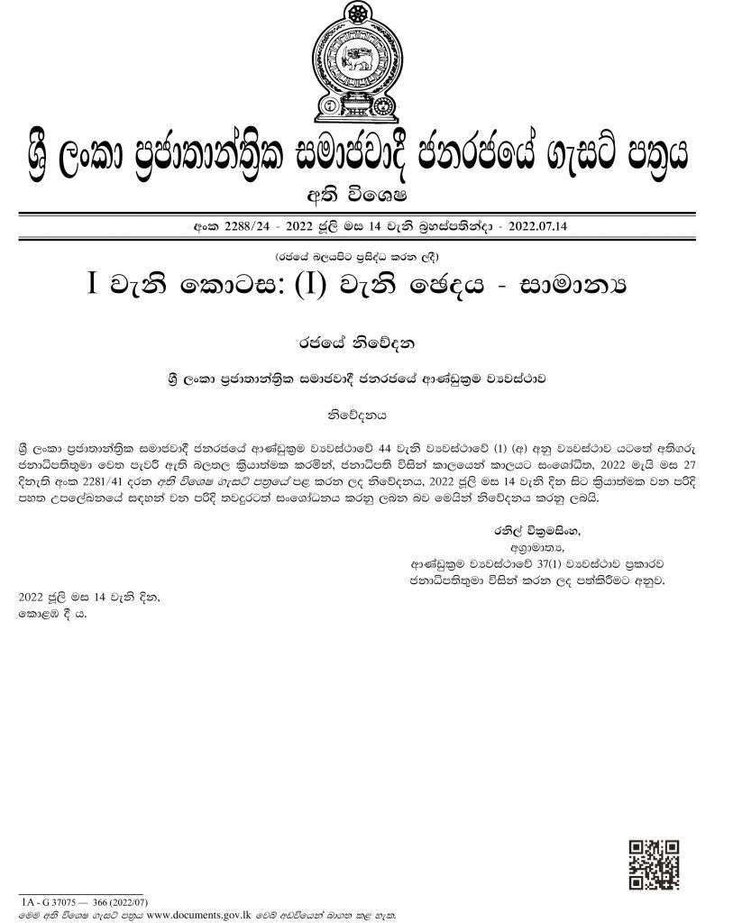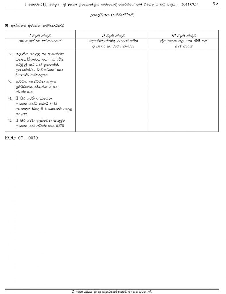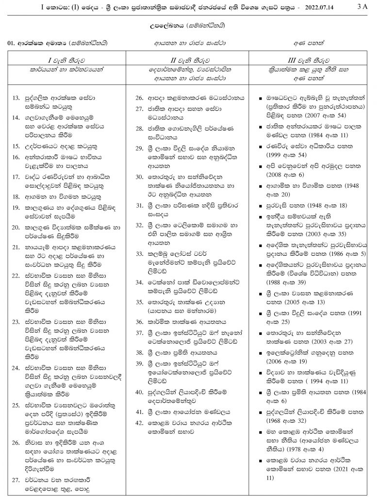 මෙම ආයතනවලින් බහුතරයක් මීට පෙර ගෝඨාභය රාජපක්ෂ විසින් හිටපු අමාත්ය ධම්මික පෙරේරා වෙත ලබා දුන් ආයෝජන ප්රවර්ධන අමාත්යාංශයට යටත් කර තිබිණි. රනිල් වික්රමසිංහ විසින් මෙම ගැසට් පත්රය නිකුත් කර ඇත්තේ ජනාධිපතිවරයා වෙත පැවරී ඇති බලතල ක්රියාත්මක කරමින් වැඩබලන ජනාධිපති රනිල් ලෙස ය. කෙසේ වෙතත් රනිල් වික්රමසිංහ නීත්යානුකූලව වැඩ බලන ජනාධිපතිවරයා ලෙස අගවිනිසුරු ජයන්ත ජයසූරිය ඉදිරියේ දිවුරුම් දුන්නේ අද (15) මධ්යාහනේ වන අතර, මෙම ගැසට් පත්රය නිකුත් කරන ලද්දේ නීත්යානුකූල දිවුරුම් දීමට පෙර වන අතර, එහි බල පැවැත්වෙන දිනය ලෙස දක්වා ඇත්තේ ද ඊයේ (14) දිනයයි.