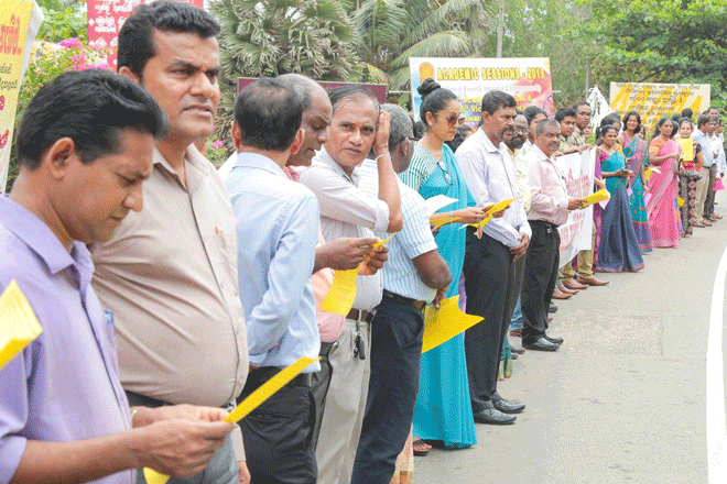 රුහුණ සරසවි මානව ශාස්ත්ර හා සමාජීය විද්යා පීඨ සහ කළමනාකරණ හා මූල්ය පීඨ ආචාර්ය සංගමය විසින් එම සරසවියේ මාතර වැල්ලමඩම ප්රදේශයේ පිහිටි ප්රධාන පරිශය ඉදිරිපිට මෙම විරෝධතාවය සංවිධානය කර තිබුණි.